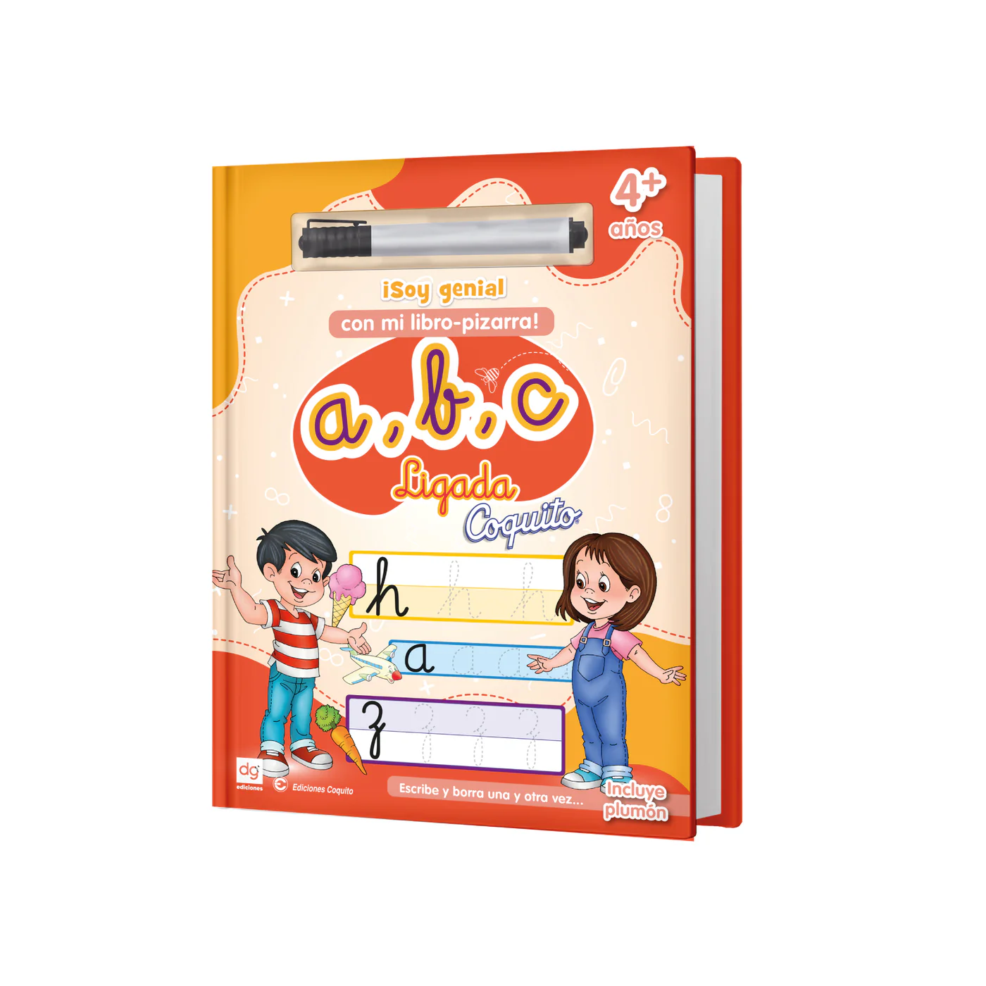El Libro Pizarra A, B, C Ligada de Coquito está diseñado para que los niños desde los 4 años practiquen el trazo correcto de las letras en escritura ligada, fortaleciendo su proceso de lecto-escritura de manera didáctica e interactiva.